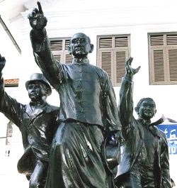 IN REMBERANCE: A sculpture of Dr Sun Yat-sen, Goh Say Eng and Ooi Kim Kheng in front of the new Penang Philomatic Union building.